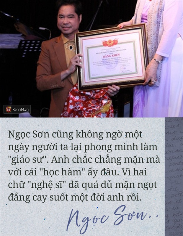 Tôi thì nghĩ, trong trường hợp này, Ngọc Sơn chẳng hay gì cho đến khi cầm tấm bằng khen thôi. Chứ anh cũng chẳng mặn mà với cái "học hàm" ấy đâu. Vì với anh, hai chữ "nghệ sĩ" đã quá đủ mặn ngọt đắng cay suốt một đời anh rồi.