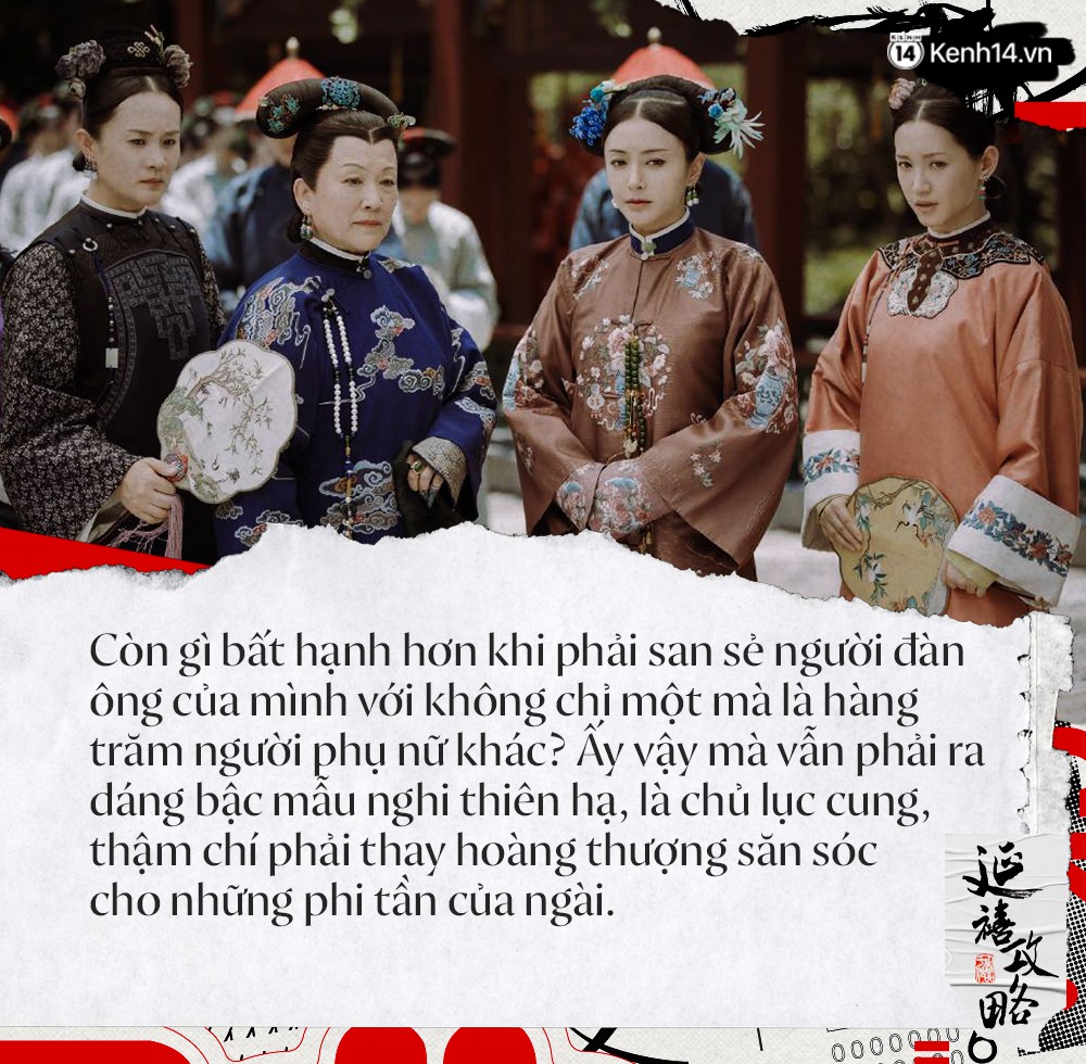 Nữ sĩ Hồ Xuân Hương có bài thơ như chạm thấu tâm can của những người phụ nữ trong xã hội phong kiến, ở Việt Nam cũng thế mà ở Trung Quốc cũng vậy: "Chém cha cái kiếp lấy chồng chung/ Kẻ đắp chăn bông kẻ lạnh lùng". Được làm vợ vua thì sao? Tưởng vinh hiển lắm thay mà kỳ thực phận mỏng chẳng dệt được phúc dày. Làm vợ vua là phải chấp nhận chia sẻ chồng với dàn cung tần mĩ nữ. Ai may mắn được vua sủng ái thì còn có cơ hội nở mày nở mặt. Phi tần nào thất sủng thì vị thế còn thua cả cung nữ. Cứ như câu ca dao mà ta nghe từ ngày nhỏ: Cá cắn câu biết đâu mà gỡ, chim vào lồng biết thuở nào ra?