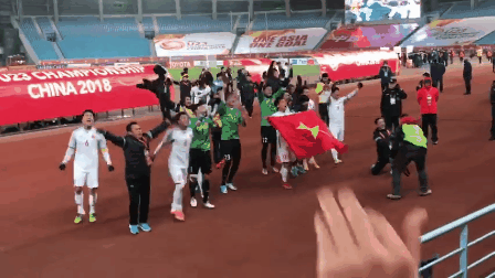 Quốc kỳ Việt Nam được giương cao trong tiếng hát vang bài ca "Như có Bác Hồ trong ngày vui đại thắng". Các cổ động viên hào hứng hô to: "Việt Nam vô địch" và không ngừng chụp ảnh những người hùng đội tuyển U23. Thậm chí, những người bạn Trung Quốc cũng tỏ ra vô cùng phấn khích, hòa vào đám đông reo hò ủng hộ đội tuyển Việt Nam.