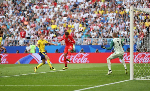 Khoảnh khắc cầu thủ Dele Alli đánh đầu nhân đôi cách biệt cho tuyển Anh trước Thụy Điển
