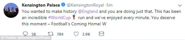 Lời chúc mừng điện Kensington gửi tới đội tuyển Anh