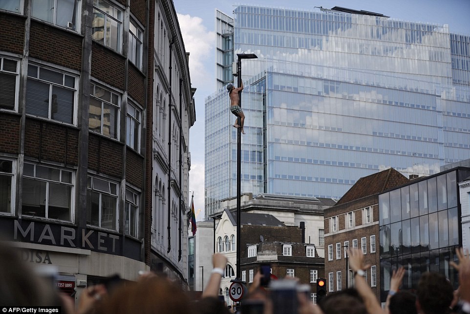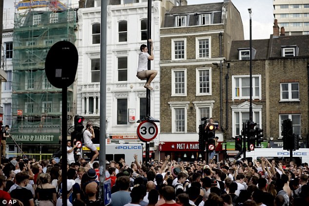 Không thiếu những cổ động viên trèo lên cột điện, đèn đường...