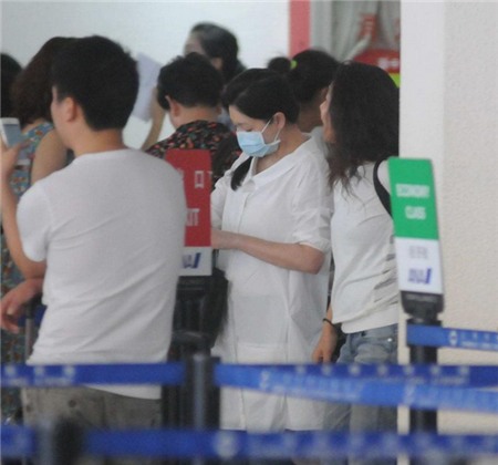 Xuất hiện tại sân bay quốc tế Thượng Hải ngày hôm qua, Từ Hy Viên dù cố che giấu nhưng vẫn lộ ra vòng hai lùm lùm.