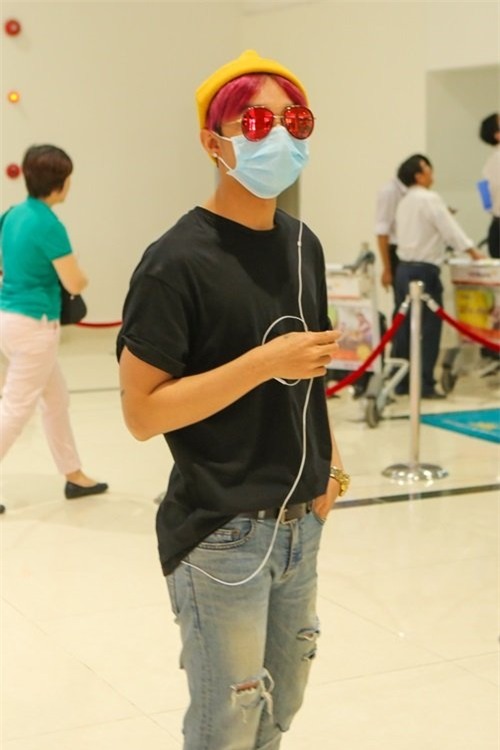 Sơn Tùng thản nhiên vừa nghe nhạc, vừa đi dạo trong sân bay sau khi đã "ẩn mình".