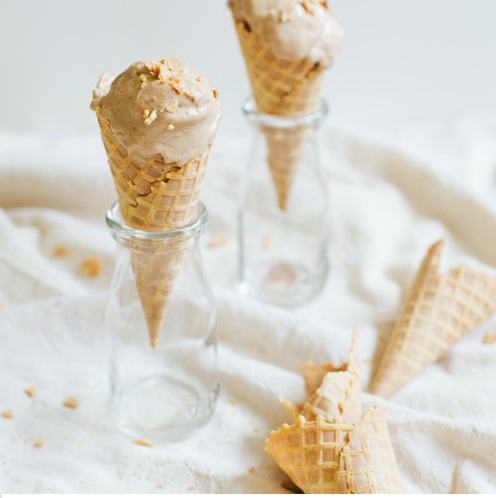 Bước 4: Cuối cùng bạn cho hỗn hợp đã xay nhuyễn vào hộp đy kín nắp rồi để vào ngăn đá tủ lạnh khoảng 1-2 tiếng là có thể lấy ra thưởng thức được rồi. Khi thưởng thức, bạn hãy múc kem ra ốc quế, rắc thêm một ít lạc rang giã nhỏ lên trên nữa, là đã có ngay một cây kem ngon tuyệt rồi.
