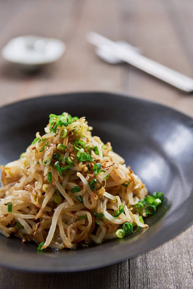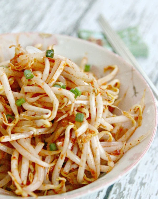 2. Giá đỗ trộn cay Giá đỗ, muối, tỏi, hành lá, dầu mè, mè rang, đường, ớt gochuchang (hoặc ớt bột), hạt tiêu xay