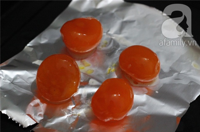 Trứng muối lấy lòng đỏ, rửa sạch với chút rượu trắng sau đó đem nướng chín hoặc hấp chín.