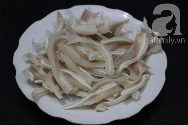 Tai heo mua về rửa sạch với muối và chanh. Sau đó luộc chín rồi thái lát mỏng.