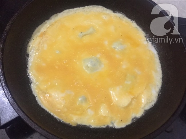 Đánh tan trứng với bột ngô và một chút gia vị. Bắc chảo lên bếp, cho chút dầu ăn láng mặt chảo. Đổ trứng vào tráng trứng chín. Lưu ý là nên chọn chảo có đường kính lớn để được lớp trứng mỏng. Tráng vàng đều hai mặt.