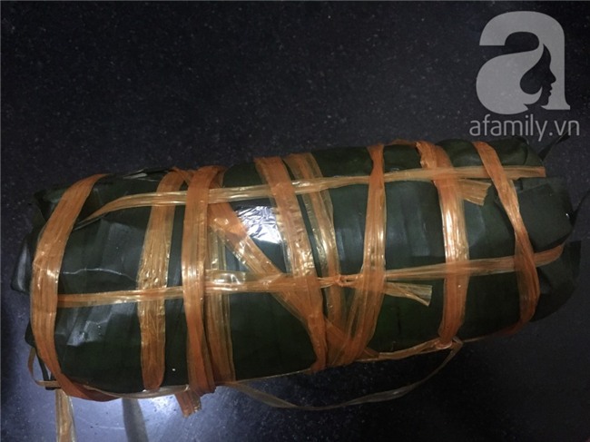 Sau đó lăn qua lăn lại để khúc giò được tròn rồi quấn dây cố định phần lá chuối.