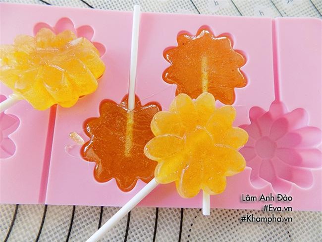 Bước 3: Đổ kẹo vào khuôn nhỏ silicon (hay trên miếng giấy chống dính bằng giấy dầu).