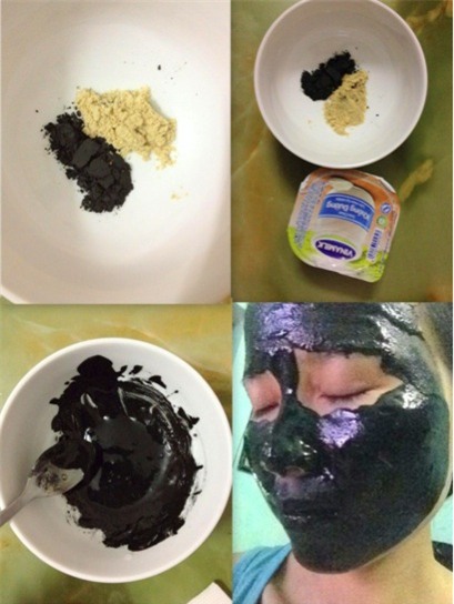 2. Mặt nạ than hoạt tính với sữa chua và cám gạo.
