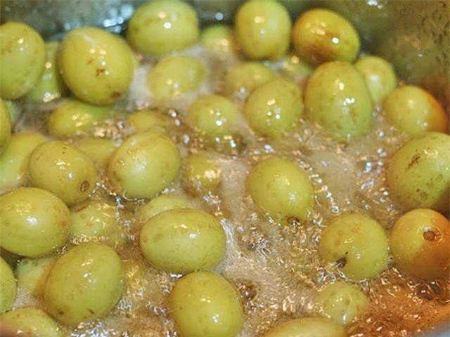 - Bước 2: Ngâm táo vào nước vôi trong khoảng 10-12h ( mục đích khi sên táo sẽ không bị nát).