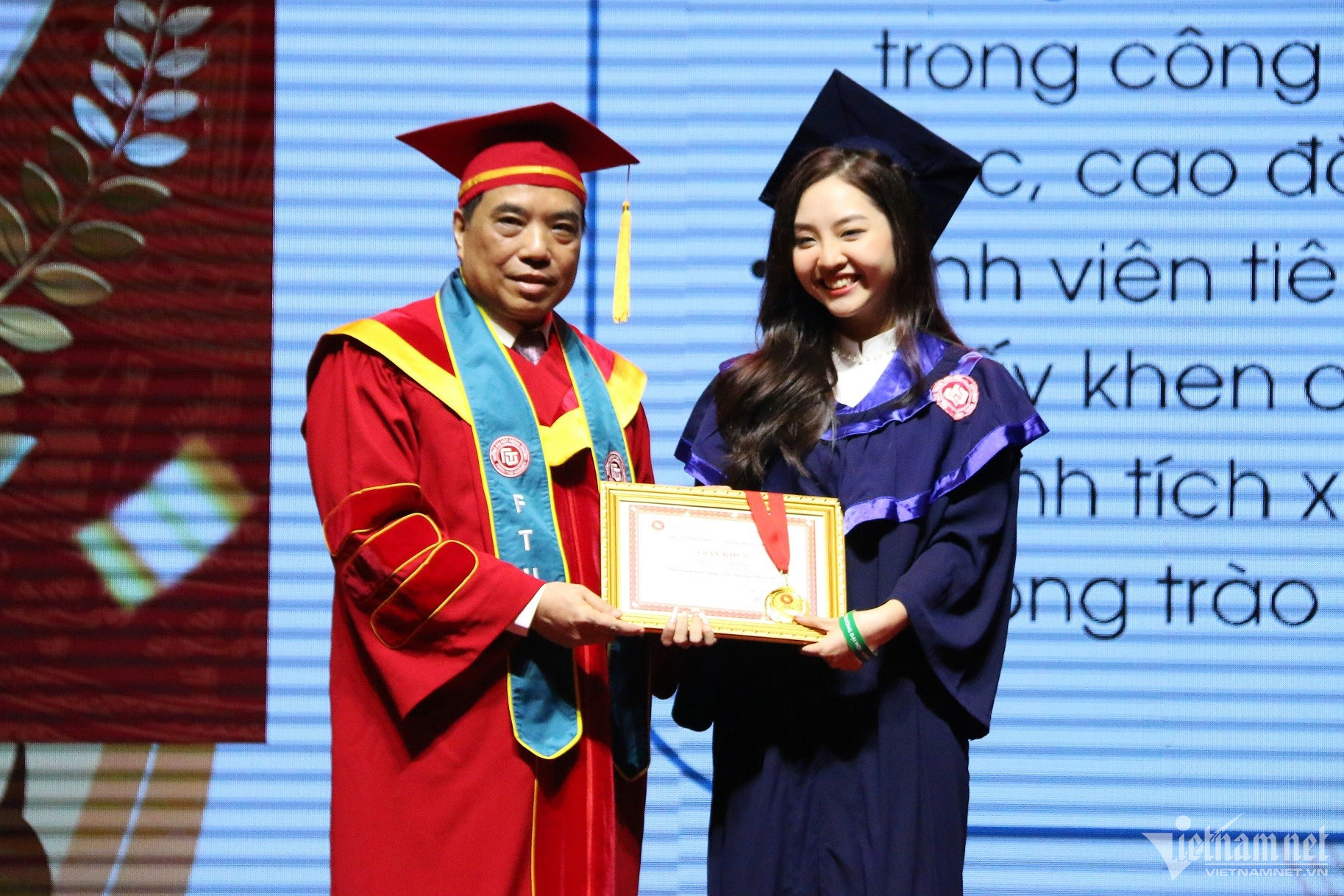 PGS.TS Bùi Anh Tuấn, Hiệu trưởng Trường ĐH Ngoại thương, trao bằng tốt nghiệp cho nữ sinh Trần Minh Châu. Ảnh: Thanh Hùng