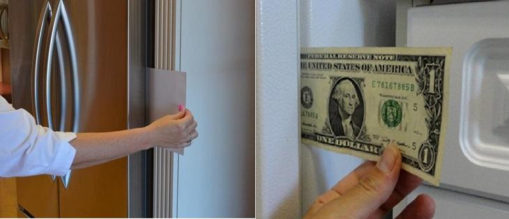 Nếu khi rút ra bạn cảm giác có một lực ma sát giữ tờ tiền lại, thì cánh cửa tủ lạnh bình thường. Nếu nó dễ dàng bung ra, nghĩa là phần cao su ở cánh cửa tủ lạnh đã có vấn đề, các miếng đệm không được niêm phong vừa khít như chúng cần. Khi đó, thay thế con gioăng là điều cần thiết và điều này tương đối đơn giản bằng cách liên hệ với nhà sản xuất hoặc công ty sửa chữa chuyên nghiệp để đặt hàng thay thế.