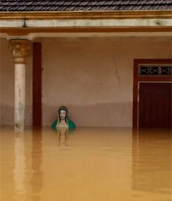 với đồng bào miền trung qua một bức hình ngập lũ và 4 chữ: Miền Trung hôm nay....