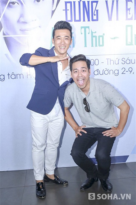 khi buổi họp báo kết thúc, Tự Long tranh thủ chụp hình rất "xì-tin" với