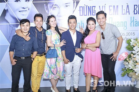 bận rộn nhưng Tự Long vẫn tranh thủ đến để cổ vũ cho nam ca sĩ trẻ. |
