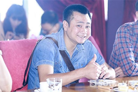 họp báo đã xong, anh mới tới và vui vẻ chụp ảnh cùng mọi người. |