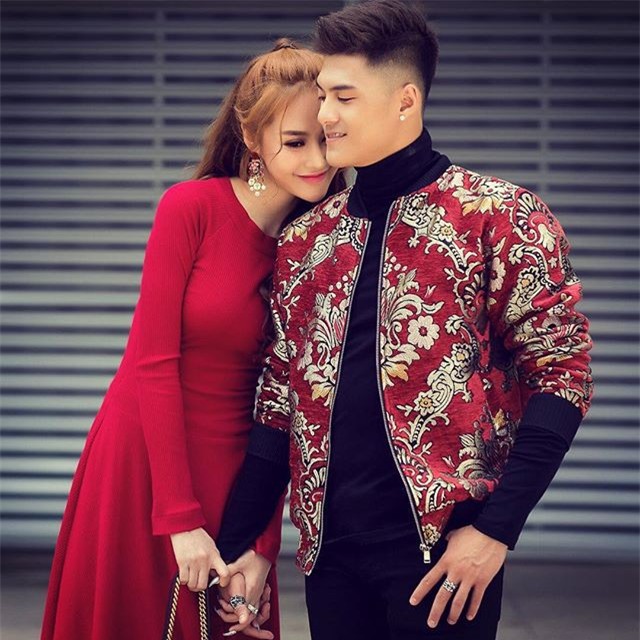 Không thiếu những khoảnh khắc tình cảm khi cả hai sánh bước bên nhau. Dịp Tết vừa rồi cặp đôi còn diện xuyệt tông đỏ nổi bật dạo phố đón xuân. Nếu như Linh Chi duyên dáng nữ tính với váy liền thì Lâm Vinh Hải nổi bật với áo bomber họa tiết cùng một cây đen đơn giản.