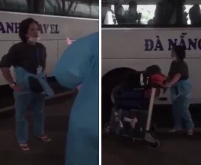 Đáng nói, khi được lực lượng chức năng nhắc nhỏ nhẹ nhàng về việc đeo khẩu trang và lên xe về khu cách ly, người phụ nữ này đùng đùng đẩy xe hành lý đi chỗ khác. Một thành viên trong đoàn lập tức ngăn lại nhưng cô vẫn có ý định chống đối, vứt hành lý một chỗ và bỏ đi với thái độ hằn học.