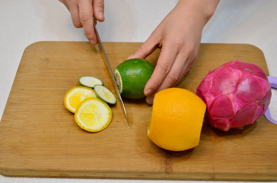 Bước 2: Thái trái cây thành lát dày khoảng 3mm.