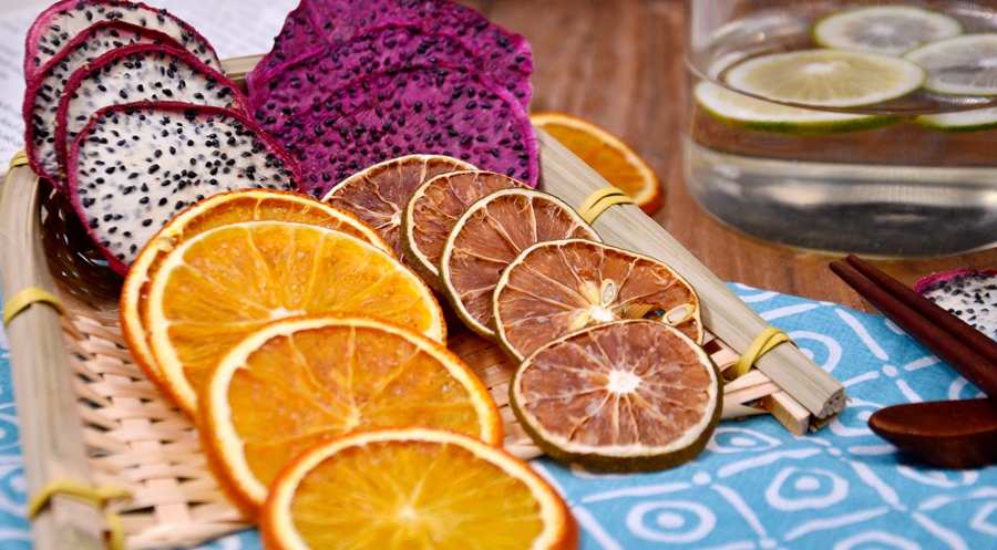 Lưu ý: Thời gian sấy có thể điều chỉnh phù hợp, tùy thuộc vào độ dày của lát trái cây. Những lát cam, chanh có thể sấy trong khoảng 3 tiếng để khô và bảo quản được lâu hơn. Thanh long chứa nhiều nước và sẽ mềm sau khi sấy khô thì có thể cần đến 4 tiếng. Bạn cũng có thể lật trái cây lại và mở cửa lò để thoát hơi nước dư thừa nếu cần thiết nhằm đẩy nhanh quá trình sấy khô.
