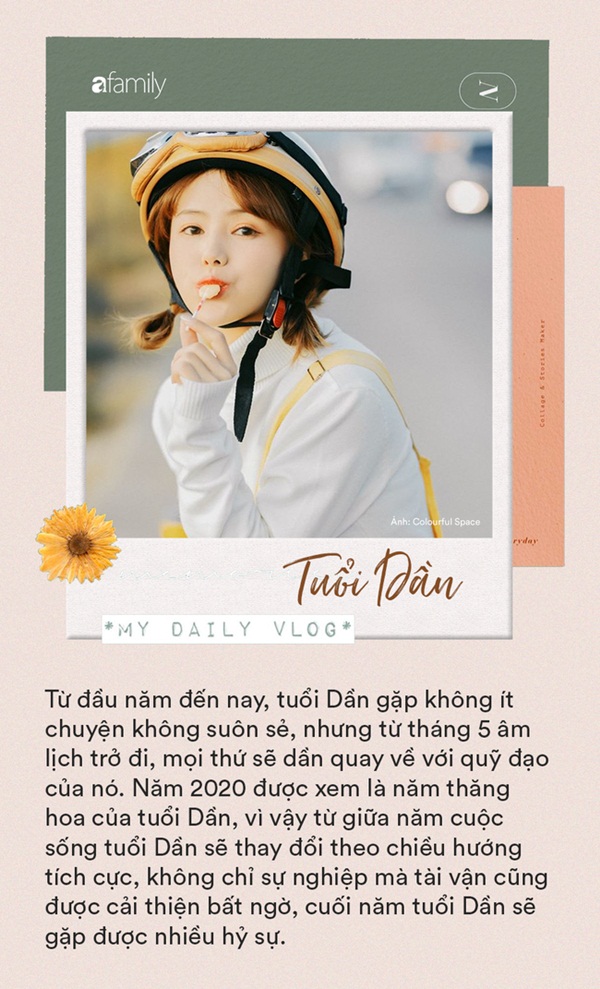 Những người tuổi Dần có tính cách mạnh mẽ, kiên định, luôn không ngừng nỗ lực cố gắng để tìm kiếm cơ hội đổi đời. Người tuổi Dần không ngại đối mặt với khó khăn, trắc trở, càng thử thách sẽ khiến họ càng phấn đấu nhiều hơn, thay đổi bản thân mình và thích nghi với môi trường sống mới. Từ đầu năm đến nay, tuổi Dần gặp không ít chuyện không suôn sẻ, nhưng từ tháng 5 âm lịch trở đi, mọi thứ sẽ dần quay về với quỹ đạo của nó. Năm 2020 được xem là năm thăng hoa của tuổi Dần, vì vậy từ giữa năm cuộc sống tuổi Dần sẽ thay đổi theo chiều hướng tích cực, không chỉ sự nghiệp mà tài vận cũng được cải thiện bất ngờ, cuối năm tuổi Dần sẽ gặp được nhiều hỷ sự.