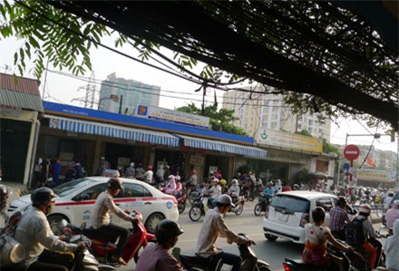 xăng trên phố Đê Lê Thành - khỏi phải bàn luận về mật độ giao thông