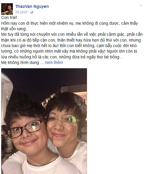 Ngay sau khi đăng tải, "tâm thư" gửi con trai của Thảo Vân đã được bạn bè và cư dân mạng ủng hộ. Dưới đây là toàn bộ nội dung bức thư của Thảo Vân gửi con trai:"Con trai!