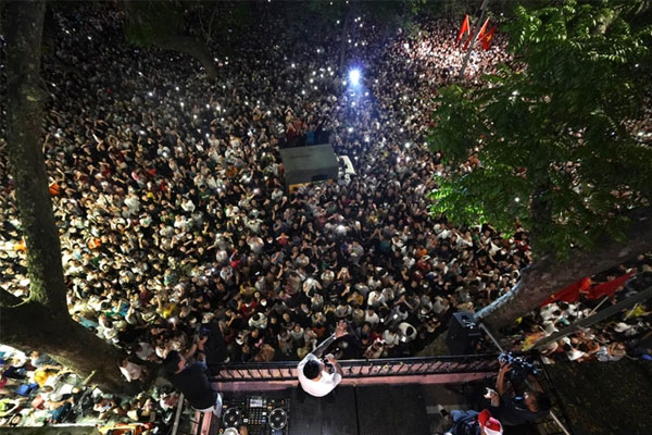 Liveshow của Tuấn Hưng được tổ chức tại ban công ngôi nhà ở phố Hàng Khay. (Ảnh: Facebook Tuấn Hưng)