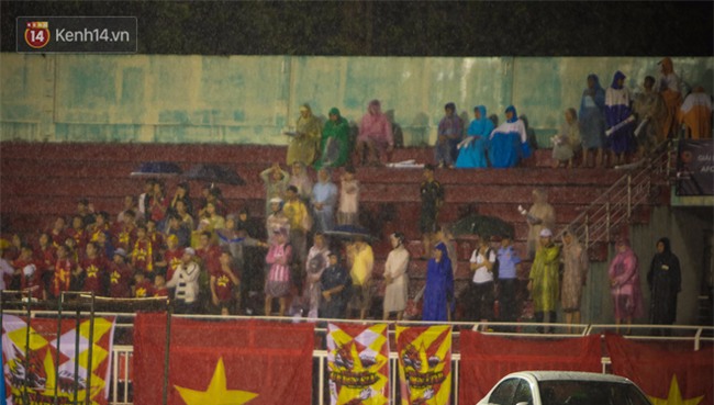 Giữa biển nước trên sân Thống Nhất vì cơn mưa lớn,