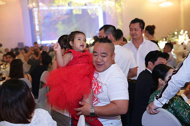 Nghệ sĩ Hiếu Hiền cũng khá vất vả chăm con gái trong tiệc cưới.