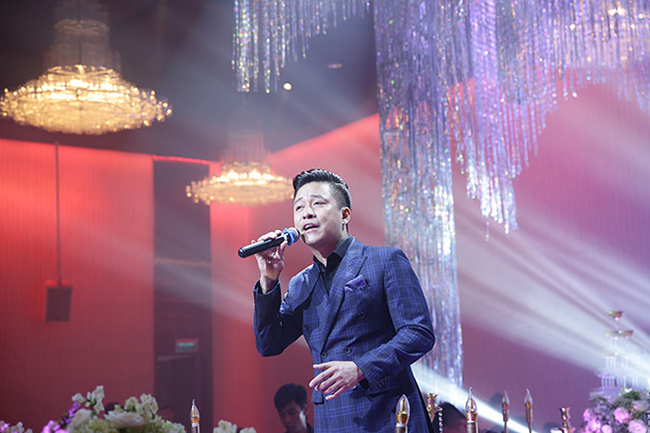 Tham gia tiệc cưới, Tuấn Hưng thể hiện 2 ca khúc là những bản hit của anh thay cho lời chúc phúc gửi đến Lâm Vũ - Huỳnh Tiên.
