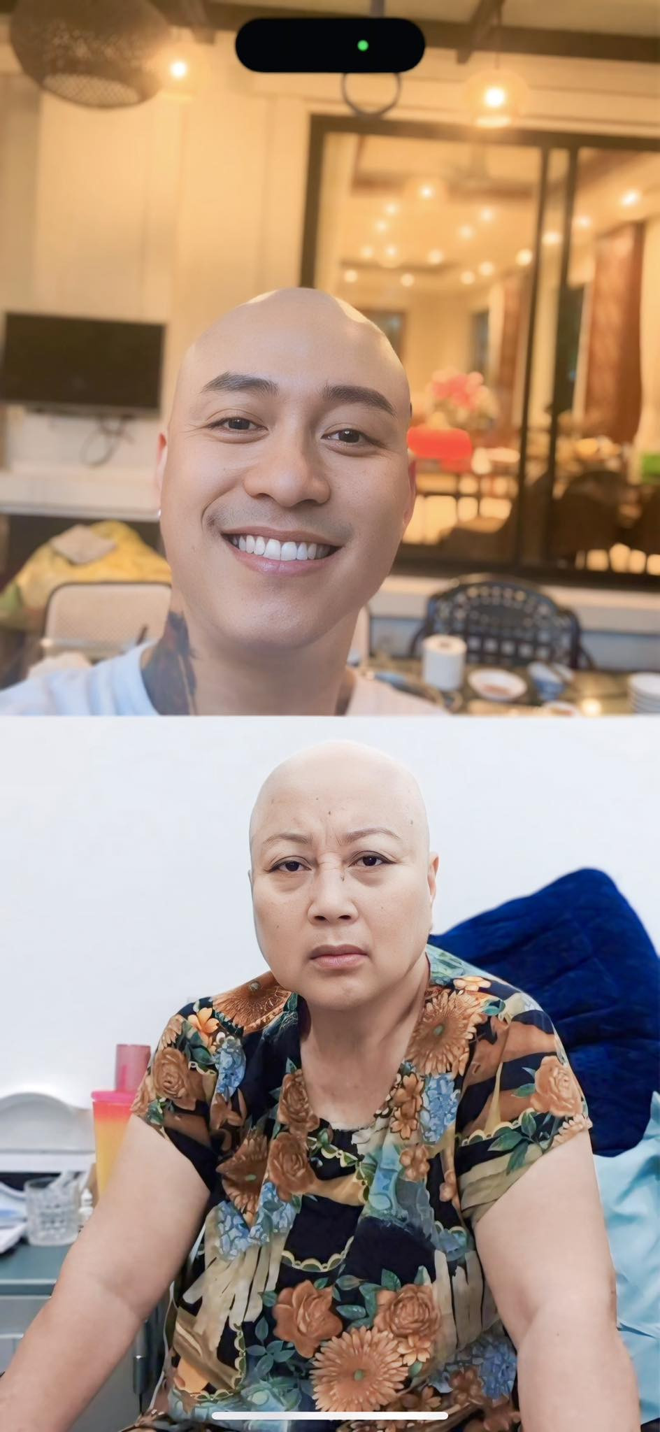 Tuấn Hưng đăng khoảnh khắc vui vẻ cùng đoạn hội thoại "mắng yêu" bên mẹ ruột. Trong hình, cả hai hiện đã đều cạo trọc đầu nhưng vẫn lạc quan, rạng rỡ.