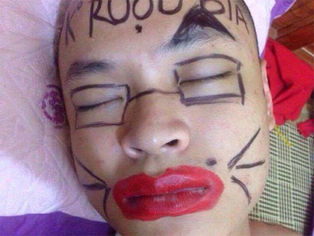 Không chịu nổi anh chồng say rượu nói lảm nhảm suốt đêm, cô vợ liền tạo ra một tác phẩm để đời trên mặt chồng.