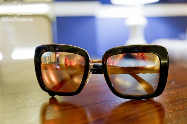 Vật dụng không thể thiếu trong túi xách của Hương Giang mỗi khi ra ngoài là mắt kính. Cô nàng luôn sử dụng kính để bảo vệ đôi mắt giữa tiết trời nắng nóng của Sài thành cũng như tránh nhiều ánh nhìn soi mói. Cặp mắt kính Chanel này trị giá khoảng 11 triệu đồng