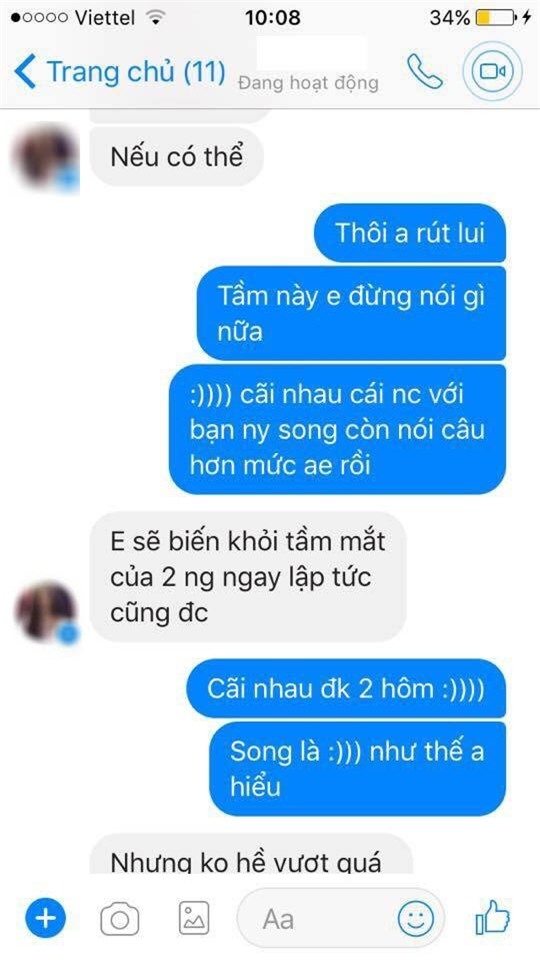 T.A nhắn tin trách móc X vì quay sang yêu bạn thân lúc cãi nhau. |
