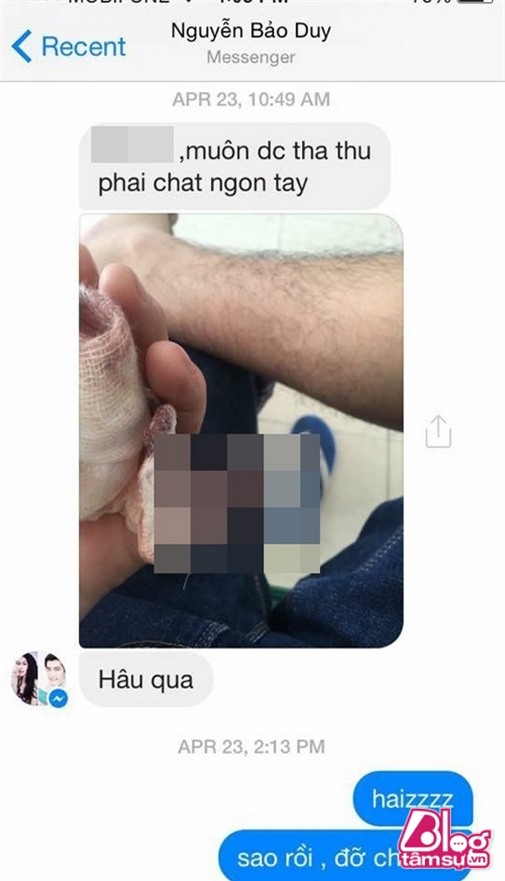 Trước đó Bảo Duy khiến nhiều người hoảng hốt khi tự tay chặt ngón út của mình
