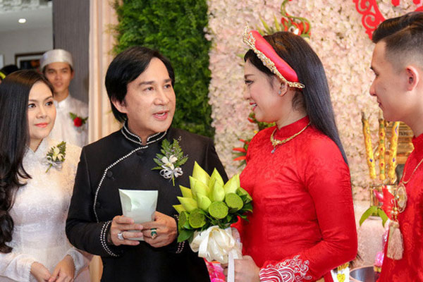 NSƯT Kim Tử Long bên vợ đầu (áo dài hồng).