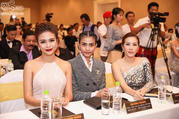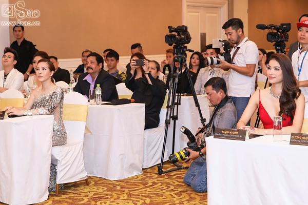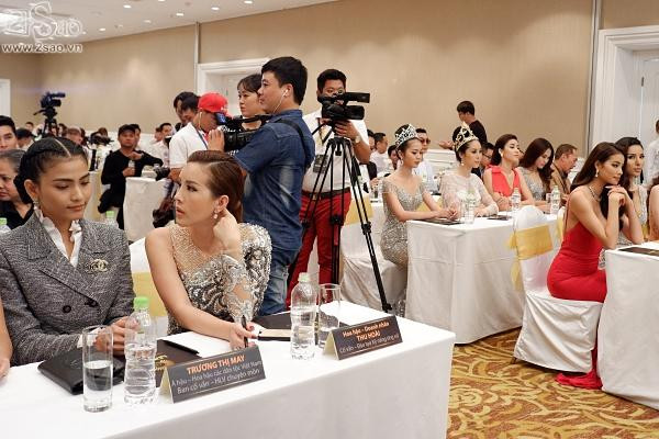 Nàng hậu ngồi đầu bàn tương đương với vị trí của đàn chị, cách nhau một lối đi ở giữa. Khi Phạm Hương xuất hiện, Hoa hậu Thu Hoài quay hẳn người sang nói chuyện với các người đẹp khác.