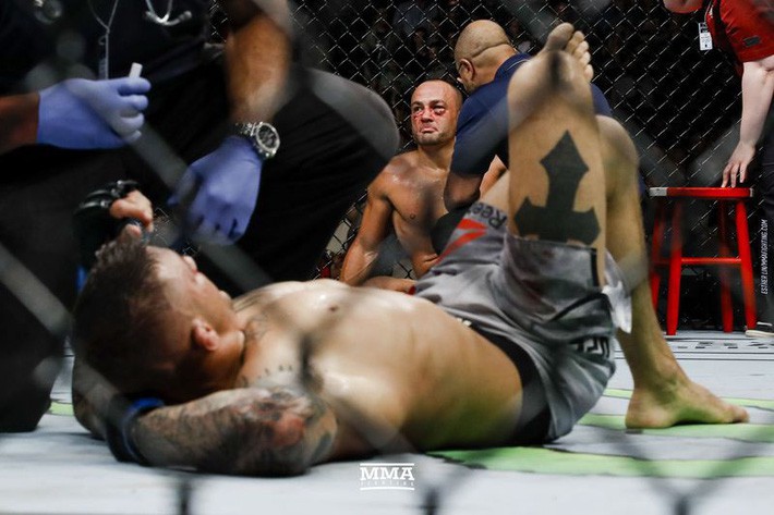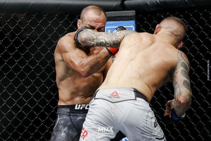 Thống kê cho thấy Poirier đã tung 41 cú đòn chỉ trong nửa phút và khiến gương mặt của Alvarez sưng phồng và bê bết máu.