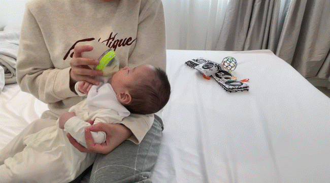 Buổi tối của Bay lại tiếp tục với những hoạt động vui chơi cùng mẹ và uống cữ sữa tiếp theo rồi ngủ một mạch đến 5h sáng hôm sau.