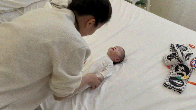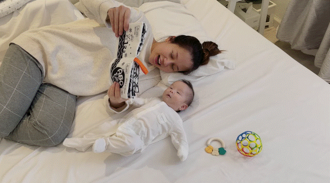 Sau đó, cô bé nằm chơi cùng mẹ.