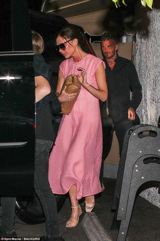 Đêm 17/4, David Beckham còn đưa Victoria đi ăn sinh nhật tại một nhà hàng Ý ở Santa Monica, California. Nhà thiết kế thời trang chọn một chiếc váy hồng nữ tính nằm trong bộ sưu tập của chính cô, và buộc tóc đơn giản. Đôi vợ chồng đều giữ kín về buổi tối riêng tư này, do đó cánh săn ảnh chỉ chụp được một vài bức khi họ rời nhà hàng.