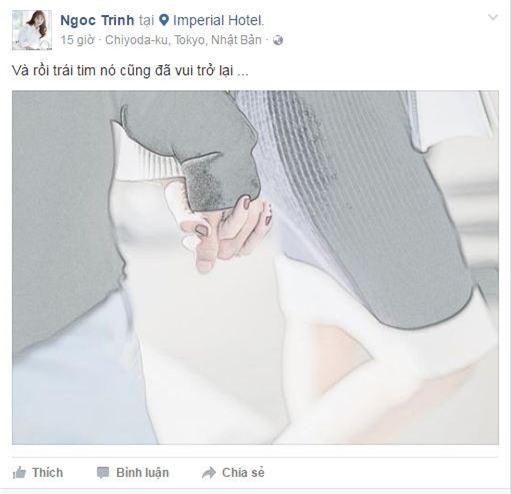 Hôm 3.12 vừa qua, Ngọc Trinh bất ngờ chia ảnh nắm tay một người đàn ông bí mật kèm lời chú thích ngọt ngào: "Và rồi trái tim nó cũng đã vui trở lại".