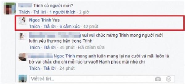 Bên cạnh đó, có ý kiến trái ngược Ngọc Bích: “Chị gái lo lắng cho em vậy là đúng. Nhưng chị ơi, phải thay đổi biết đâu cuộc sống của mình sẽ vui vẻ hơn, không bước vào thì làm sao biết được đúng hay sai nên hãy để Trinh làm theo con tim đi ạ, vì cô ấy bảo con tim đã vui trở lại mà”.