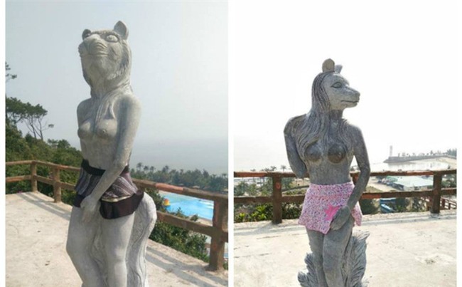 Sau khi dư luận phán ảnh, khu du lịch sẽ cho những bức tượng này mặc quần áo để không gây phản cảm. Ảnh Le Nam Khanh.