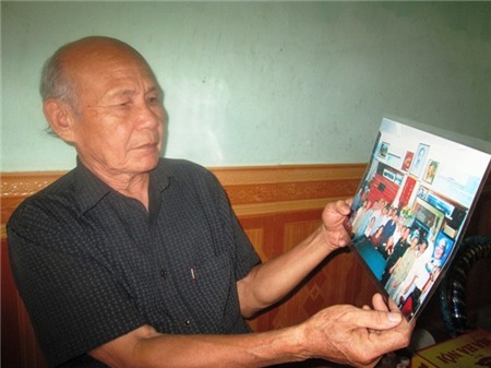 Cụ Nguyễn Cảnh Cân, một người vinh dự được chụp ảnh cùng vợ chồng Đại tướng đang cầm trên tay bức hình kỷ niệm quý giá này. |