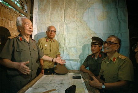 | Đại tướng Võ Nguyên Giáp ôn lại những ngày tháng trong chiến dịch Điện Biên Phủ vào năm 1994. Ảnh: Catherine Karnow. |